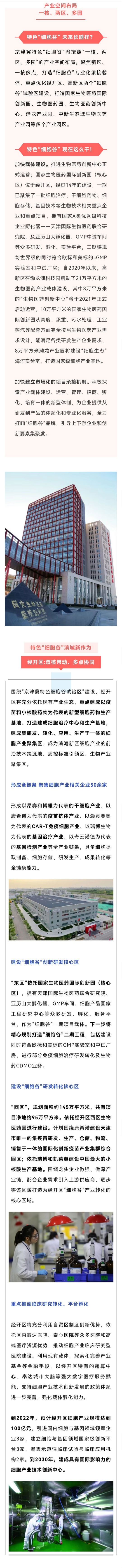 “十四五”开局之年京津冀特色“细胞谷”建设,被写入天津市和滨海新区“十四五”规划及2021年的政府工作报告重点任务。6月4日,京津冀特色 “细胞谷”试验区在滨海新区揭牌成立,此举旨在加快细胞产业布局,助推美丽“滨城”建设。