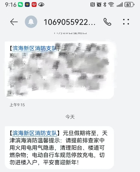 支队同步组织开展网格员消防安全专项培训,提升基层网格力量火灾隐患排查和宣传引导能力;面向居民举办消防安全知识讲座,通过典型案例剖析、互动答疑等方式,强化居民消防安全意识。此外,支队精准发力,向弱势群体、网格员等群体发送消防安全提示短信5000余条,并借助滨海公安局微信群组小程序,向各居民群推送消防安全提示信息,覆盖家庭超80万户。